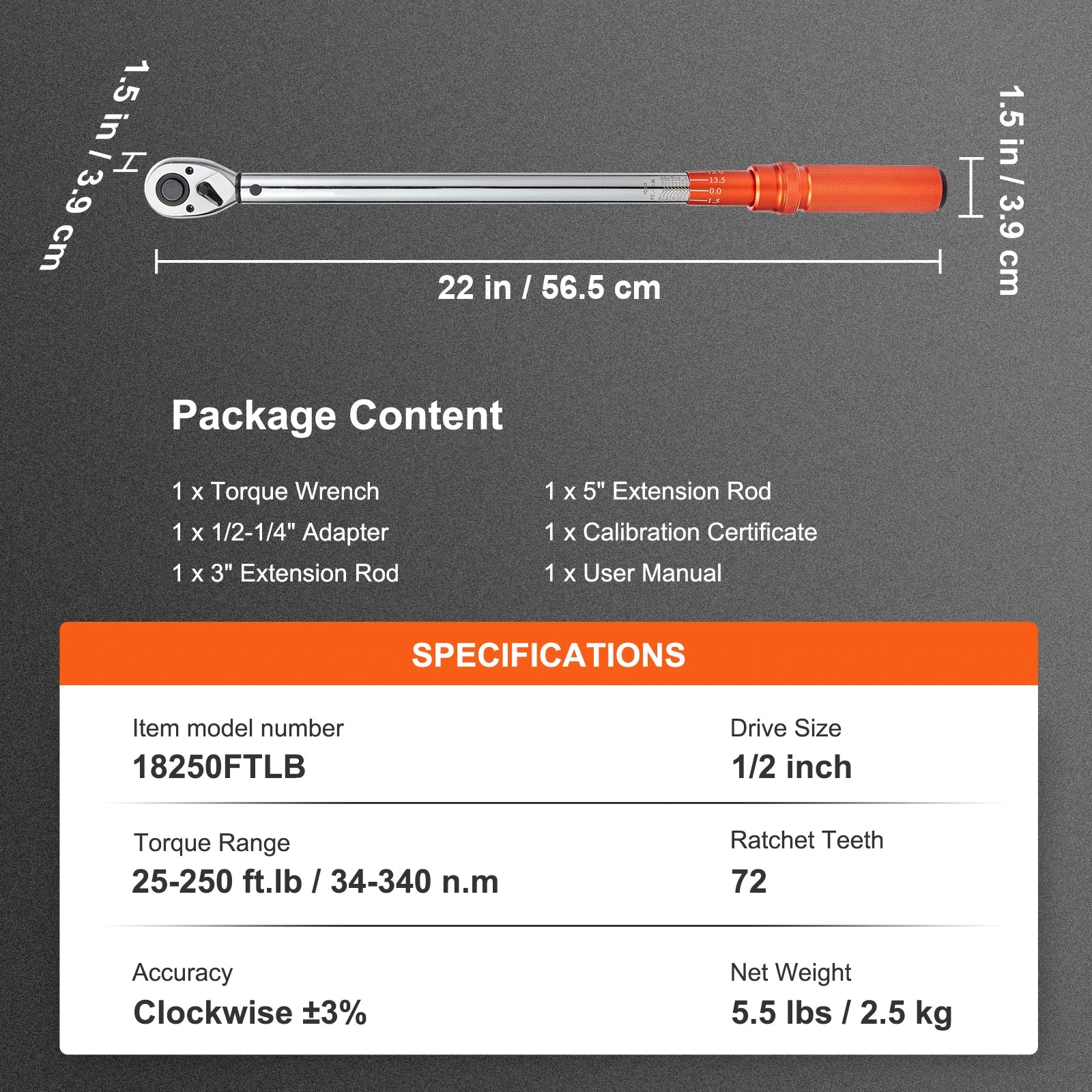 High Accuracy: Delivers precise torque measurements within ±3% accuracy, with a torque range of 10-80 ft.lb / 14-110 N.m. Each wrench comes with a calibration certificate for guaranteed reliability.